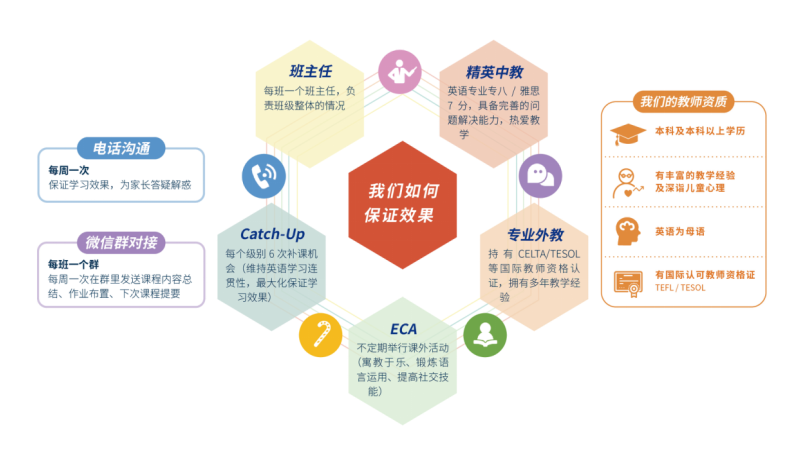 而我们的中教老师,都具有英语专业八级、雅思7分或者同等英语水平,具有丰富的教学经验,热爱教学,擅长带动课堂氛围。了解孩子课堂状态,知道引领孩子牢牢掌握课堂知识。